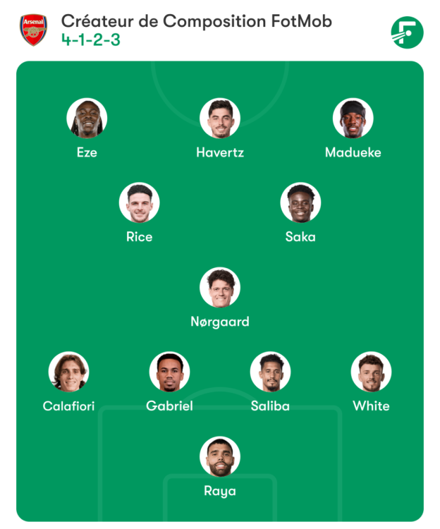J'aimerai bien voir cette composition de départ. White et Norgaard pour faire souffler Timber et Zubi. Redonner une chance à Eze de marquer des points et essayé de le mettre en confiance. Après si Havertz n'est pas dispo, j'aimerai bien qu'il essaye Trossard en faux n°9 .