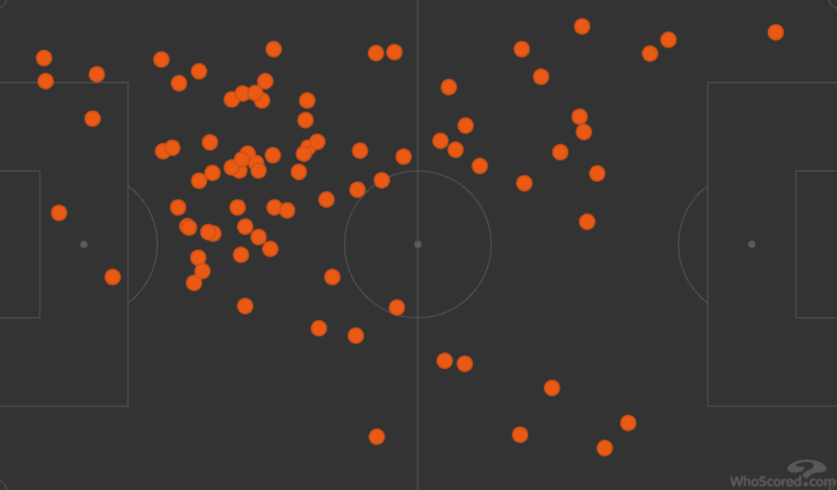 C'est plus ou moins le cas sur tout les matchs de la saison, les latéraux et lui trouvent des progressive pass très souvent, font les premières relances, le rôle de 6 et de milieu a changé et est particulier chez nous. Après dire que c'est la faute aux systèmes ou aux joueurs, surement un peu les 2.