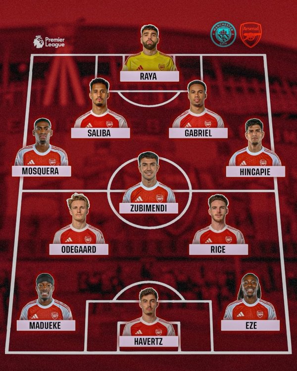 Meilleure composition possible à mes yeux. C'était vraiment mon souhait d'avoir Odegaard et Eze ensemble pour tenir le ballon et avec Havertz en plus. En vrai ça n'implique absolument pas un résultat positif mais perso je ne vois aucune meilleure solution à ce 11 vu les joueurs disponibles. Bon match à tous. (Je découvrirai tout ça ce soir en replay)
