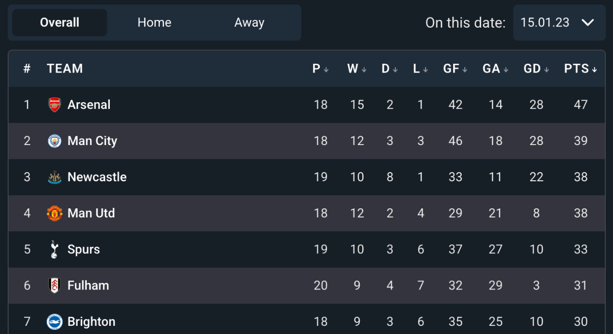 5 victoires et 1 nul, +4 sur City et on est à 6 points. Match très très mauvais aujourd'hui où les deux équipes ont été à la ramasse, aucune créativité des deux côtés Peut-être la fatigue, on enchaîne depuis des semaines tout les 3j Le nul reste correcte avec le nul de City hier. Maintenant faut aller gagner les prochains matchs et relancer la machine ! COYG !3 points
